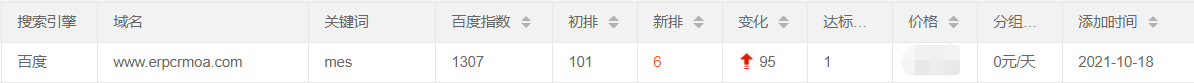 MES关键词指数1300多,从100名外进入首页第5位。