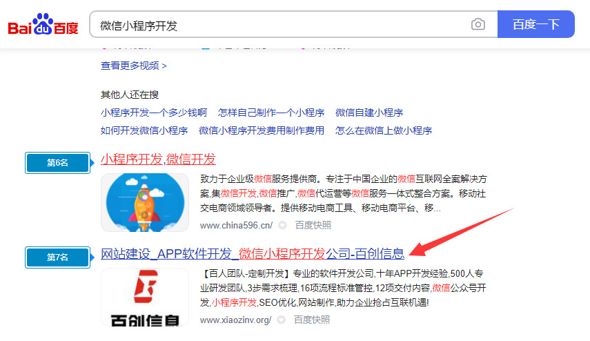 杭州百创信息技术有限公司网站www.xiaozinv.org仅一条收录的新站,继“软件开发”上首页之后,直接优化热门关键词“微信小程序开发”,指数986,微信小程序开发目前已经上第一页。