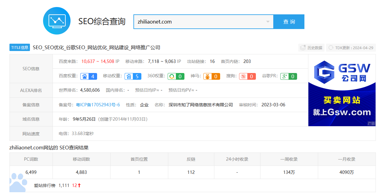 百企搜目前已经启用全新研发的新一代站群SEO建站系统,网站仅有4000多条的内容更新量,实现了超9000万的收录量!临近一个亿的小目标,是近10年来少有的企业官网能有如此高的收录量的站点。