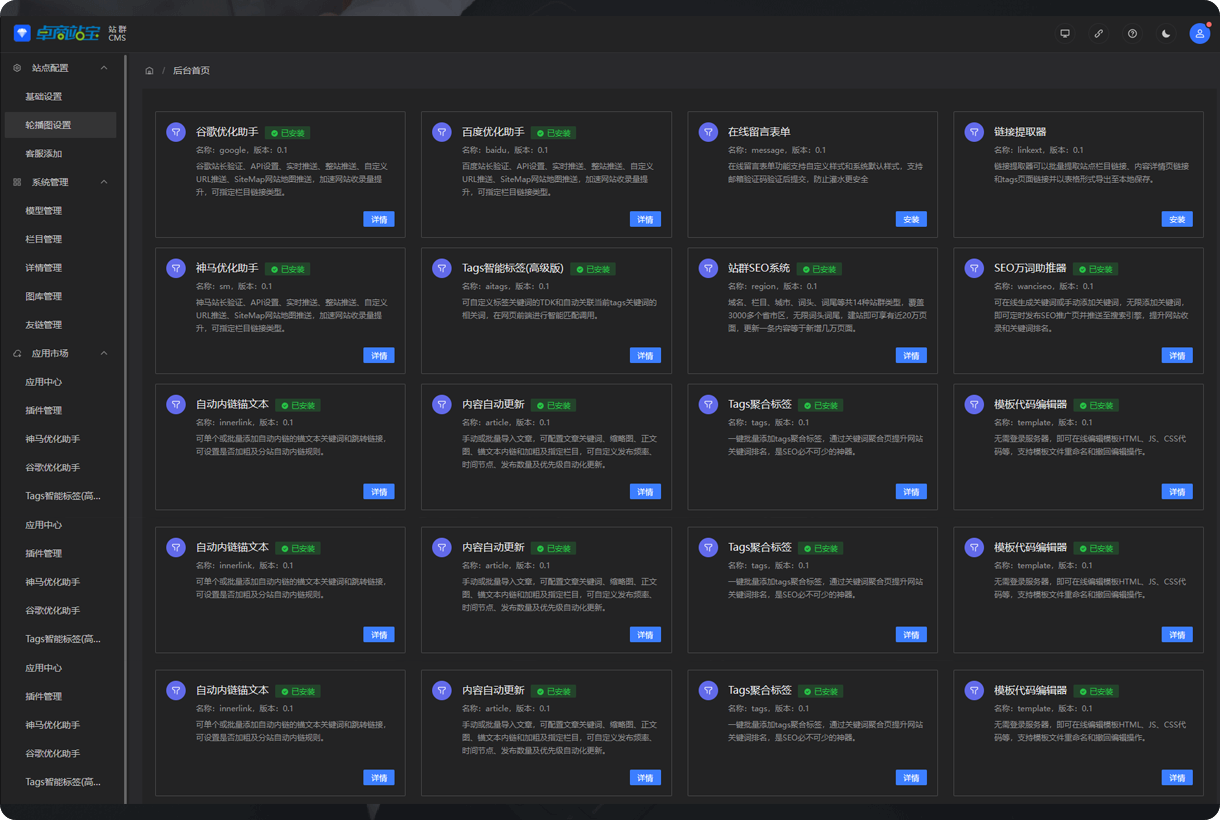 卓商站宝,专注SEO性能和智能自动化运维的CMS建站系统,做SEO站点,做站群网站,认准卓商站宝。